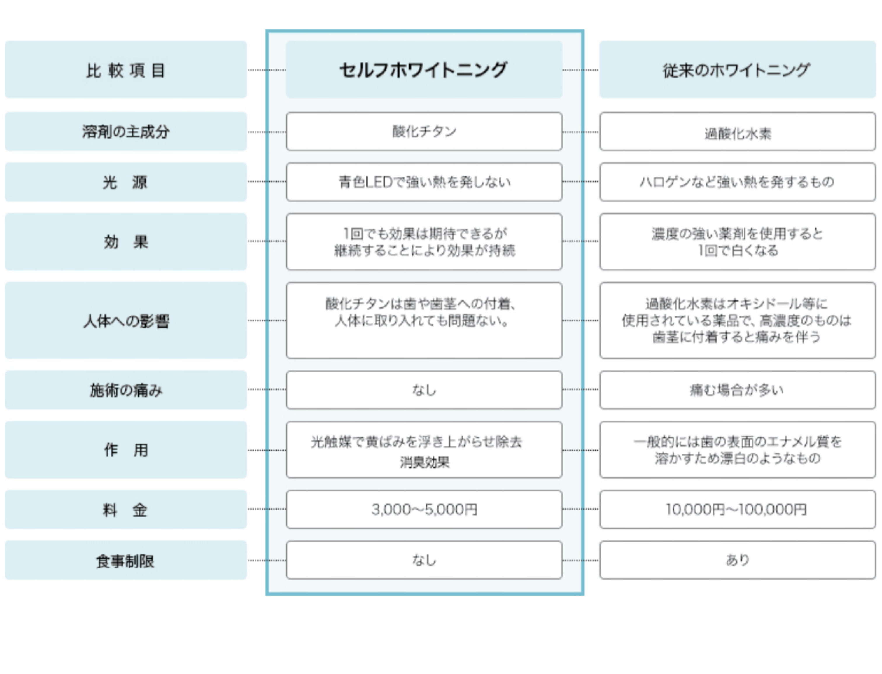 ① 低価格通常のホワイトニングに比べ、安価な料金でホワイトニングが可能です。